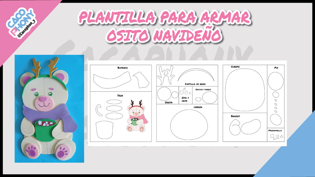 Plantillas parar armar Osito navideño en fomi / foami o cualquier material que prefieras. Para adornar salón de clases, casa, arbolito, puerta, etc.