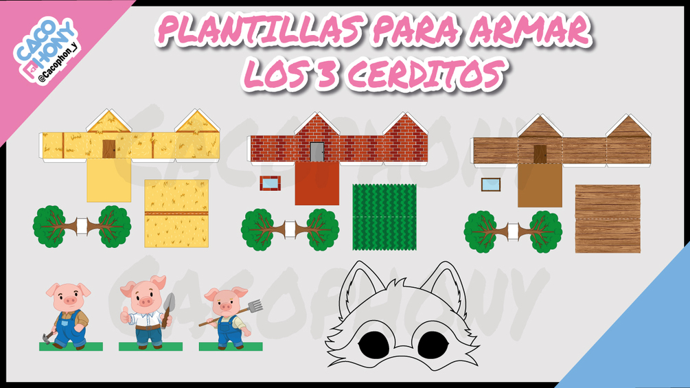 Plantillas para armar Los 3 Cerditos